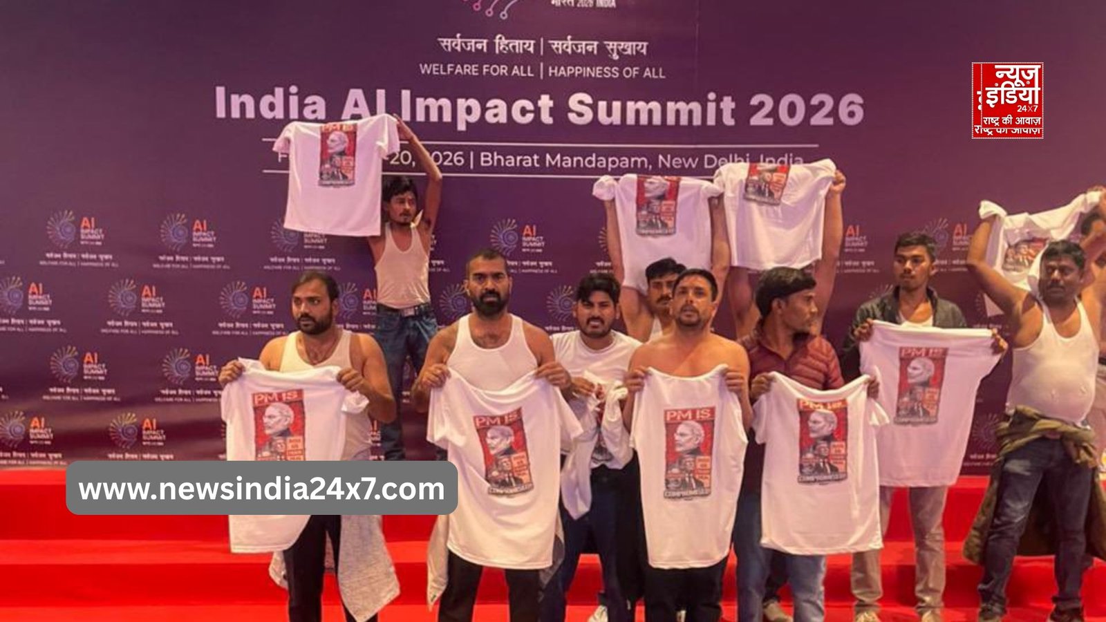 दिल्ली के भारत मंडपम में एआई इम्पैक्ट समिट 2026 का आयोजन किया जा रहा है। इस समिट में 100 से अधिक देशों के प्रतिनिधि और 22 देशों के राष्ट्राध्यक्षों ने हिस्सा लिया. इसके साथ ही 500 AI लीडर भी ने भी इस समिट में अपनी मौजूदगी दर्ज कराई। लेकिन शुक्रवार की दोपहर यूथ कांग्रेस की एक शर्मनाक हरकत से देश शर्मसार हो गया। दरअसल, यूथ कांग्रेस के कुछ कार्यकर्ता भारत मंडपम पहुंचे और अचानक से शर्टलैस होकर सरकार के खिलाफ नारेबाजी करने लगे। इससे कार्यक्रम स्थल पर अराजकता की स्थिति बन गई।