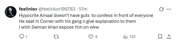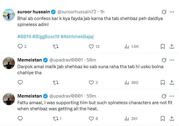 दर्शकों को अमाल का यह रवैया बिल्कुल पसंद नहीं आया। ट्विटर और इंस्टाग्राम पर लोग उन्हें “भीगी बिल्ली”, “बुजदिल कैप्टन” और “डरपोक खिलाड़ी” कहकर ट्रोल करने लगे। यूज़र्स ने याद दिलाया कि जब अभिषेक बजाज ने एक टी-शर्ट कूड़ेदान में फेंकी थी, तो अमाल ने उन पर जमकर गुस्सा निकाला था, लेकिन जब खुद की गलती सामने आई तो उन्होंने चुपचाप जिम्मेदारी से पल्ला झाड़ लिया।