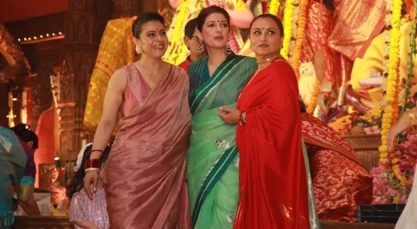 मुंबई में हर साल आयोजित होने वाली नॉर्थ बॉम्बे सर्बोजनीन दुर्गा पूजा इस बार भी श्रद्धा,परंपरा और बॉलीवुड की चमक का सुंदर संगम प्रस्तुत करती नजर आई। इस मौके पर काजोल,रानी मुखर्जी, तनीषा मुखर्जी और अयान मुखर्जी अपने पिता और चाचा की जगह कार्यक्रमों के व्यवस्थाओं में व्यस्त दिखाई दिए। हर गेस्ट को उन्होंने व्यक्तिगत रूप से अटेंड किया, जिसमें रानी और काजोल सबसे आगे रहीं। इस दौरान उनकी एक तस्वीर वायरल हुई, जिसमें वे ट्विंकल खन्ना के साथ नजर आ रही हैं। ट्विंकल ग्रीन साड़ी में बेहद खूबसूरत दिखीं।