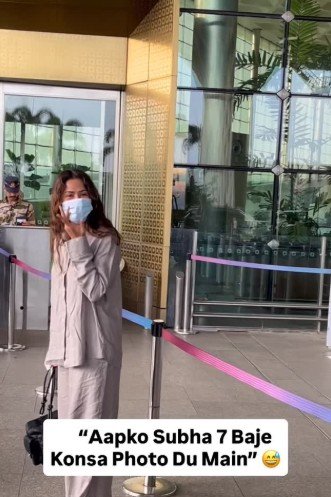 शुक्रवार को सोनम बाजवा को मुंबई एयरपोर्ट पर स्पॉट किया गया। जब पैपराजी ने उनसे तस्वीरें क्लिक करवाने की बात कही तो सोनम ने मुस्कुराते हुए मज़ेदार अंदाज़ में जवाब दिया, आपको सुबह 7 बजे कौन-सा फोटो दूं मैं। इस दौरान वो कैजुअल लुक में नजर आई, उनका सिंपल अंदाज़ फैंस को खूब पसंद आया।