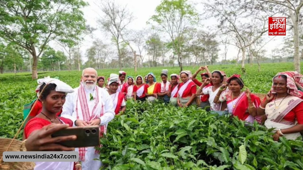 पीएम मोदी ने ‘मनोहारी टी इस्टेट’ का दौरा करने के बाद सोशल मीडिया प्लेटफॉरम X पर कहा, “हम हर चाय जनजाति परिवार के प्रयासों पर अत्यंत गर्व महसूस करते हैं। उनकी कड़ी मेहनत और लगन ने असम के गौरव को बढ़ाया है।” PM मोदी को महिलाओं के एक समूह के साथ चाय की पत्तियां तोड़ते हुए भी देखा गया।