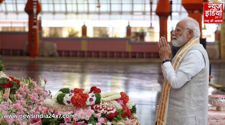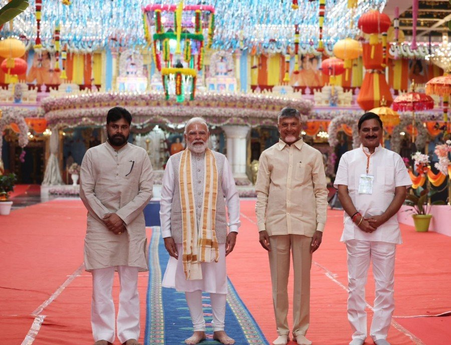 PM Modi : आंध्र प्रदेश के पुट्टपर्थी में बुधवार, 19 नवंबर 2025 को प्रधानमंत्री नरेंद्र मोदी श्री सत्य साईं बाबा के पवित्र मंदिर और महासमाधि पर पहुंचे। उन्होंने पूजा-अर्चना कर आध्यात्मिक गुरु को श्रद्धांजलि अर्पित की। इस दौरान आंध्र प्रदेश के मुख्यमंत्री एन. चंद्रबाबू नायडू और डिप्टी सीएम पवन कल्याण भी उनके साथ मौजूद रहे।